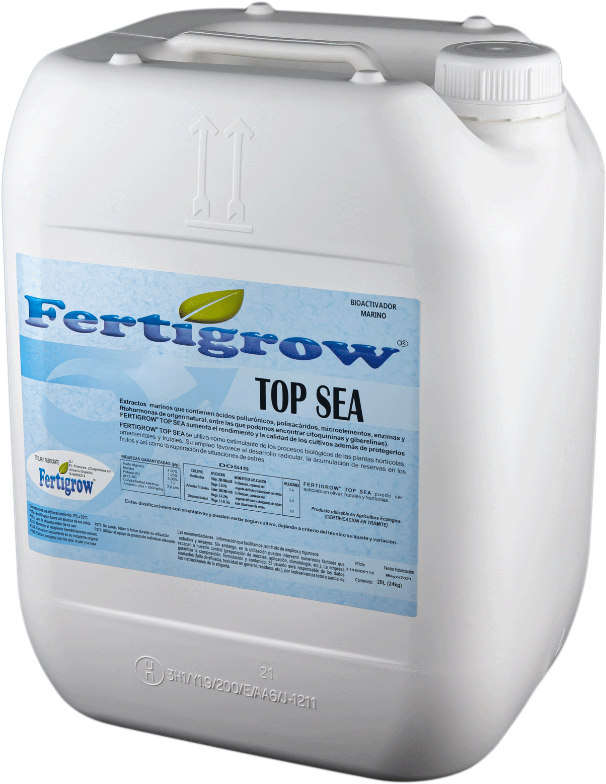 • Cultures horticoles et industrielles: 150-300 cc / hl tous les 15 jours lorsque la culture a 2 à 4 feuilles ou en transplantation lorsqu'elle est déjà enracinée, pré-floraison, nouaison et stades de développement des fruits.